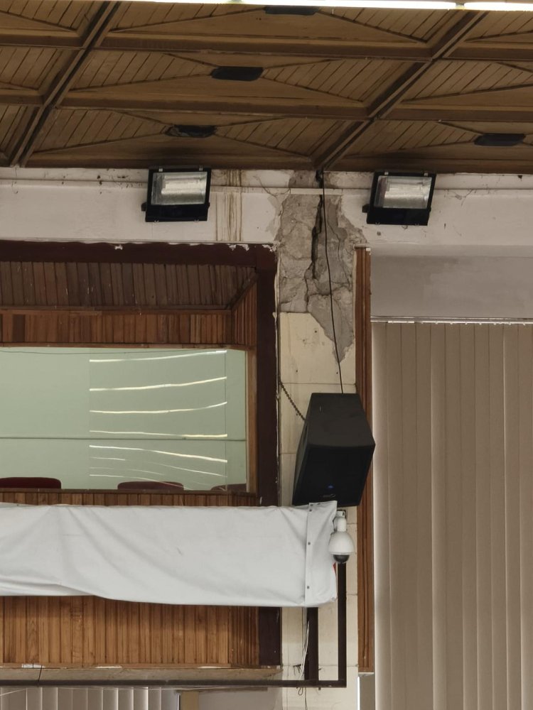 Pare că nimeni nu a fost impresionat de bucățile de tencuială căzute de pe frontispiciul mai multor coloane. Pare că nici crăpăturile nu au impresionat pe nimeni, copiii continuând să desfășoare activități sportive, iar, după cum bine știți, s-au organizat în continuare evenimente care au generat aglomerație.